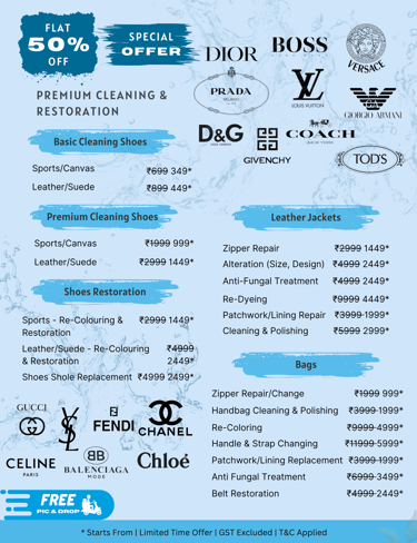Professional laundry, dry cleaning and premium restoration services for clothes, shoes, bags, and home fabrics